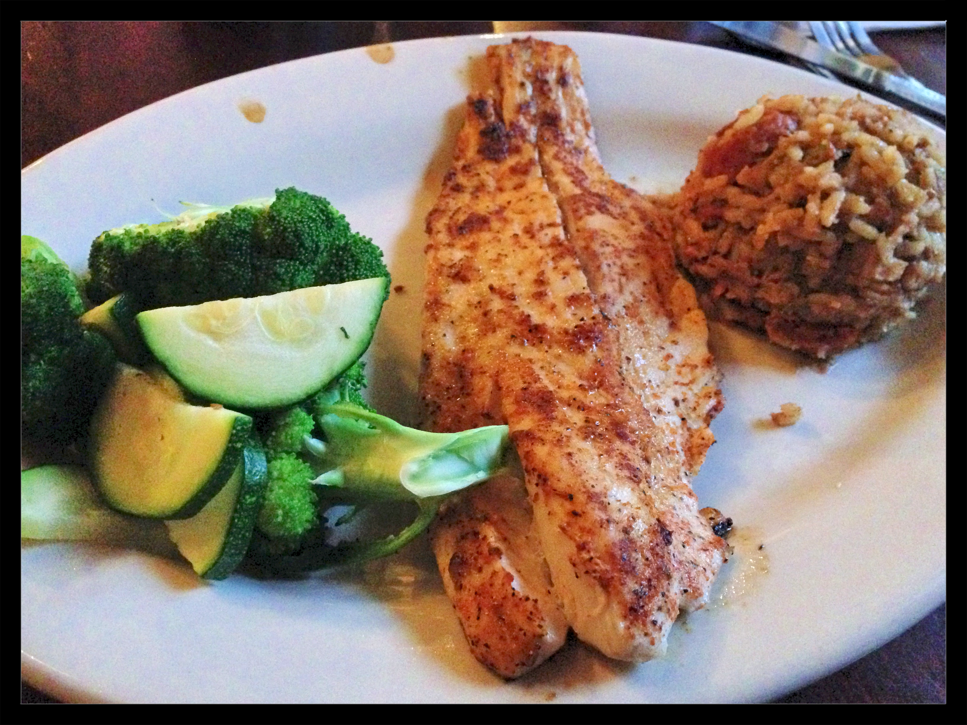 Adam ordered red beans & rice, which also came with chicken tenders and sausage. I ordered blackened redfish and jambalaya. Both meals were tasty and we were glad that we had experienced some traditional Cajun style food.