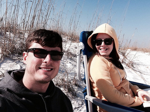 7. A Valentine’s road trip to Pensacola beach. It was warm but very windy! We got a sheltered spot behind a small dune and read for a few hours.